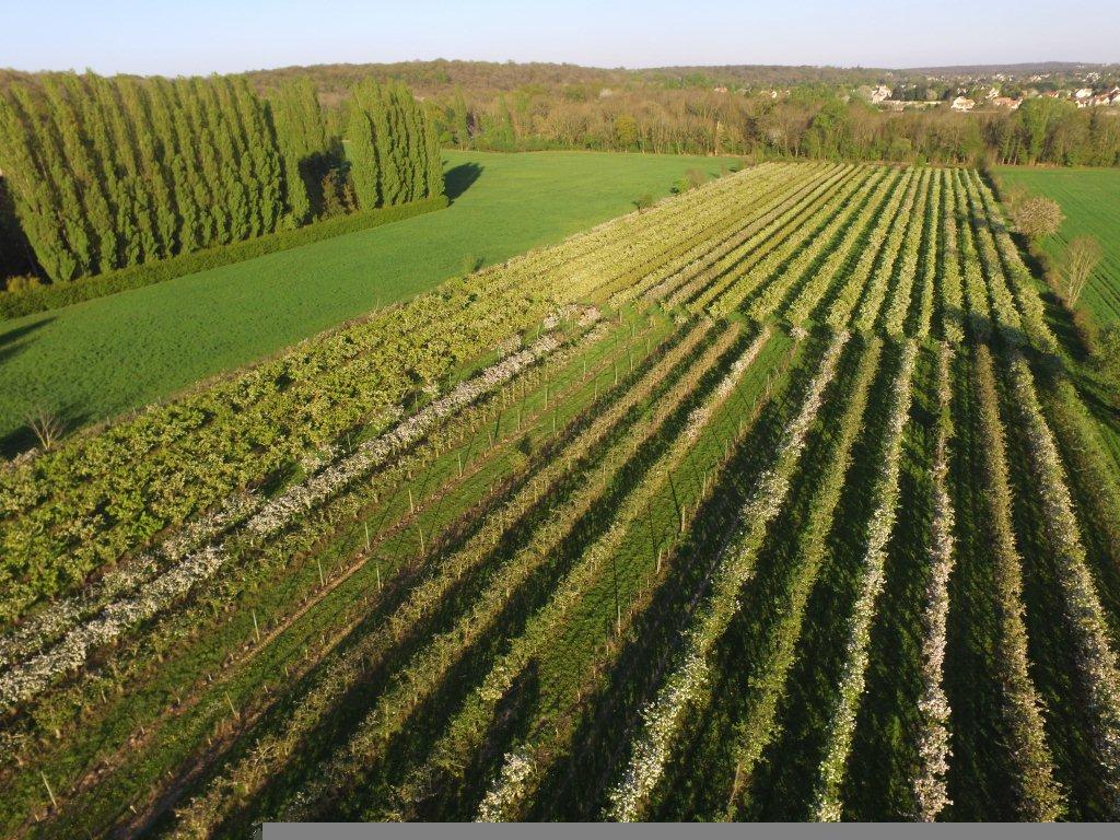 Voici néanmoins une belle photo vue du ciel de l’une de nos parcelles de pommiers et poiriers. Pour les fruits il va falloir attendre le mois de septembre !