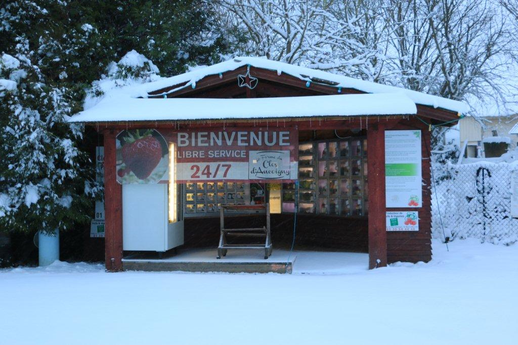 Malgré le froid, le vent, la neige, notre distributeur est bien là à votre service 7/7j et 24/24h.