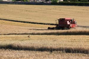 Eh oui, comme chaque année l’été est consacré en grande partie aux moissons. A la Ferme du Clos d’Ancoigny on vient juste de commencer avec l’orge d’hiver (celle que nous avons semé en octobre et qui a passé l’hiver sous un coussin de neige). Et nos amis les lièvres sont à découvert et pas très contents .Les vaches regardent passer les trains ,les lièvres regardent passer les moissonneuses batteuses…