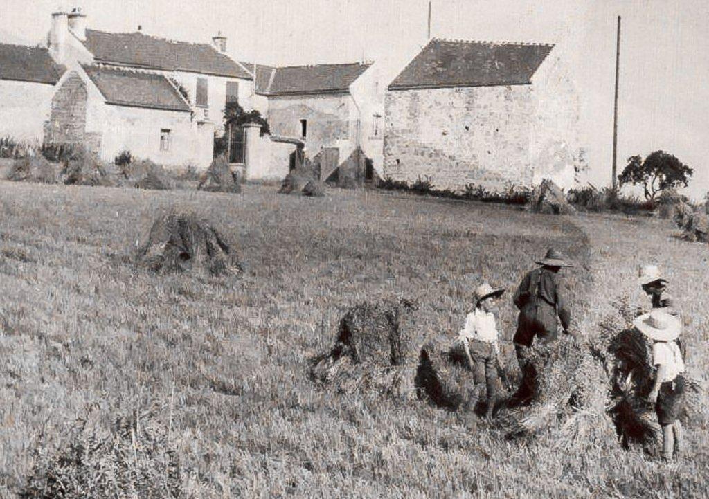 La photo date de 1931. Juillet, la fin des moissons. A l’époque, les gerbes de blé étaient rassemblées à la main en « Dixio » (10 gerbes).