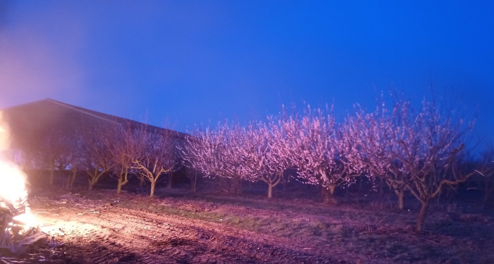 Pour protéger leurs fleurs du gel , il faut leur produire de la chaleur au lever du jour en allumant des feux, en espérant que ce soit efficace !